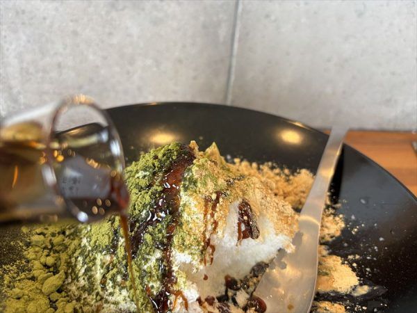 私は雪のようなミルク氷にきな粉と抹茶が半分ずつ、そこに黒蜜をうえから好きなだけかけて食べました。 これは写真にしてもとっても映えます。確かに冷たい。でもその冷たさはどこかやさしい。 雪を思い切り好きなシロップをかけて食べてみたいと思ったことはありませんか? そんな夢のようなかき氷なのです。