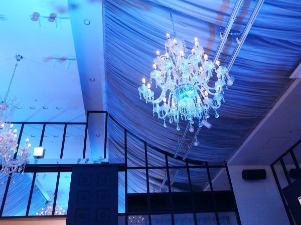 「Ristorante Mare Blu ~リストランテ マーレ ブルー~」がオープンするのは、あおなみ線ささしまライブ駅より徒歩3分の場所にある「ストリングスホテル 名古屋」。 天窓から降り注ぐ自然光が魅力のバンケットルームなので、日が暮れていくのにともなって青が深くなっていきます。