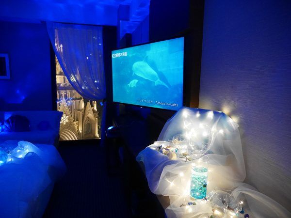 ストリングスホテル 名古屋にはこの夏、名古屋港水族館とコラボしたコンセプトルーム「STRINGS AQUA ROOM」も登場しています。 美しい大聖堂が目の前に見える特別なお部屋で、名古屋港水族館チケット付きのプラン。 リストランテ マーレ ブルーでの食事のあと、このお部屋に泊まれば、朝までずっと海の中にいる気分で過ごせます。 デートはもちろん、水族館好きのお子さんも大喜び間違いなし! 夏休みの予定に迷っている方は、ぜひ検討してみてください。