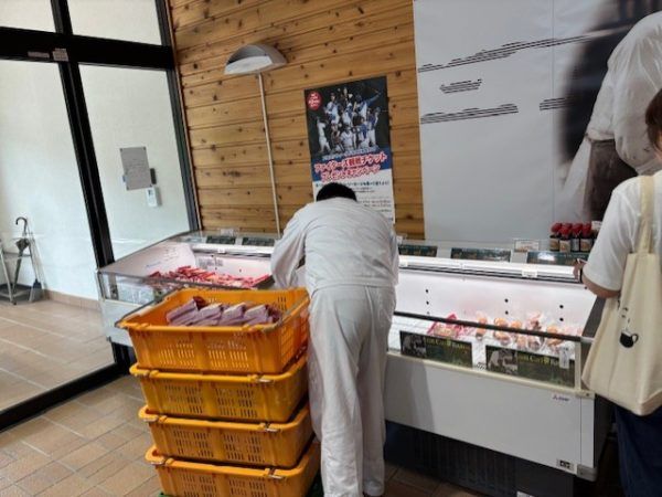 直売所は広くはないけれど、入店したら、山積みのソーセージがたくさんある! と思ったら、工場価格なので、みなさんじゃんじゃんかごへ入れて、あっという間に品薄に!