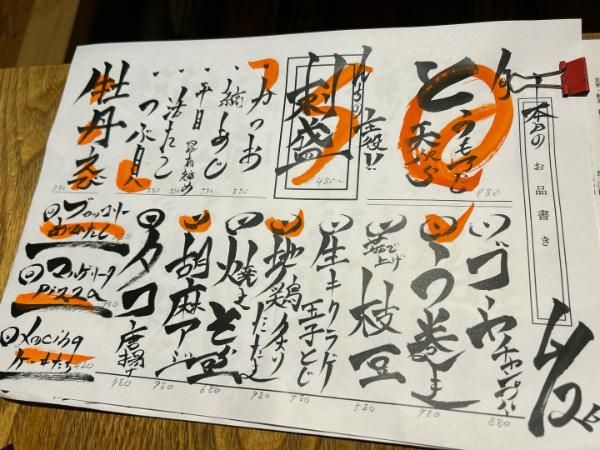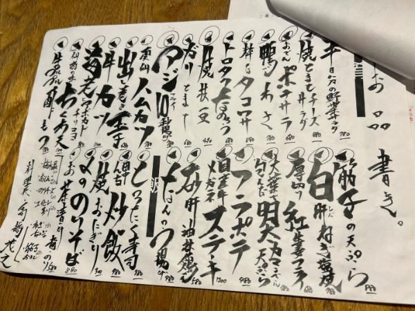 素敵な字体のお品書き。 途中、お酒に酔ってきたら読めなくなってきそう(笑)