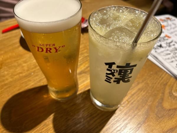 乾杯の1杯はビールと生キウイサワー(ゴールドキウイ)