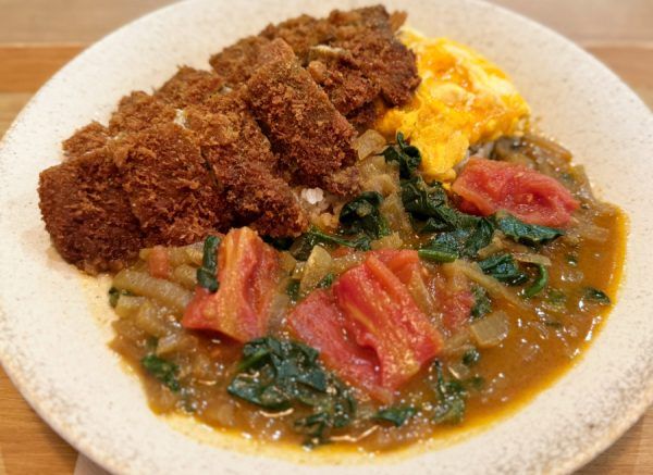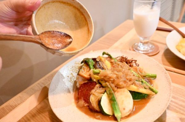 仕上げはスパイス香るルゥをたっぷりと。野菜とスパイスの一体感が、体にやさしく染み渡る。