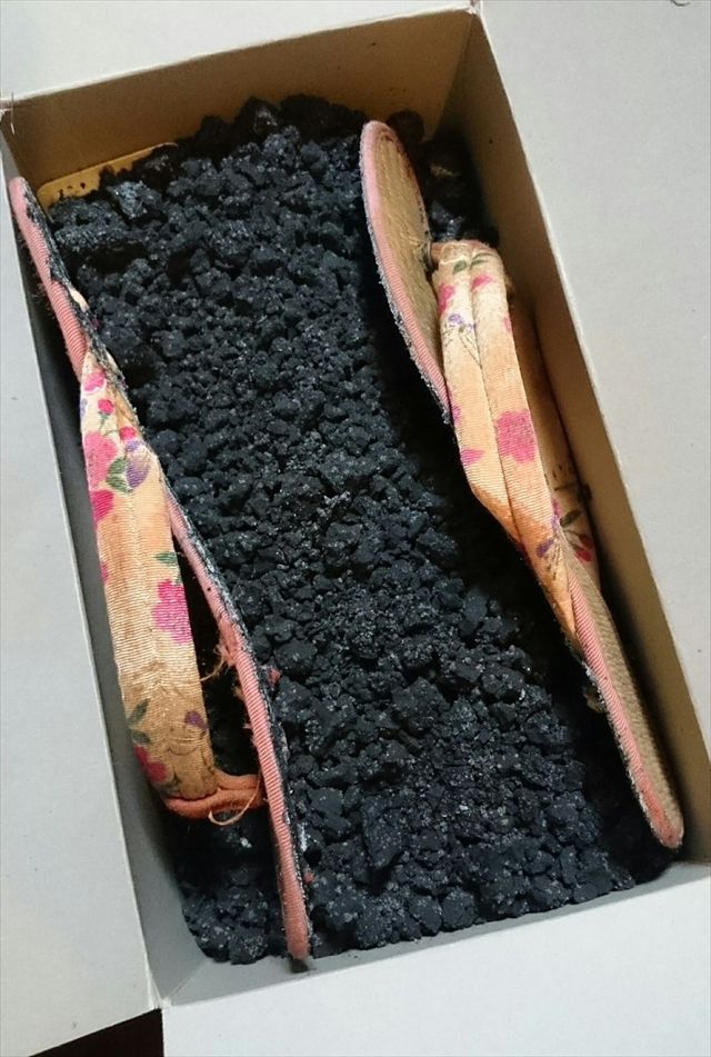大昔のサンダル草履が加水分解で『大変なこと』になっていた!草履の間にあるこの黒い物体はいったい何!?