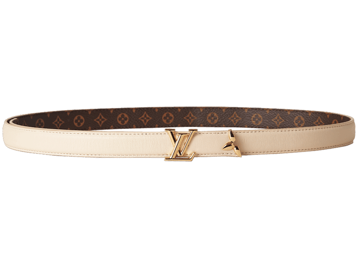 LVイニシャルのバックルに、モノグラム・フラワーモチーフをかたどったゴールドカラーのメタルがエレガントなレザーベルト。着けるだけでいつものスタイルがグッと洗練された印象に。裏面のモノグラム・キャンバスとリバーシブルで使えるのも嬉しい。