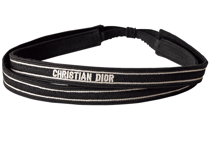 リボンテープにブランドロゴを刺繍で施した2連のヘッドバンド。ディオールらしい上品でエレガントなデザインは、レディなスタイルにはもちろん、キュッとタイトにまとめたヘアに合わせてモダンに落とし込んでも素敵。