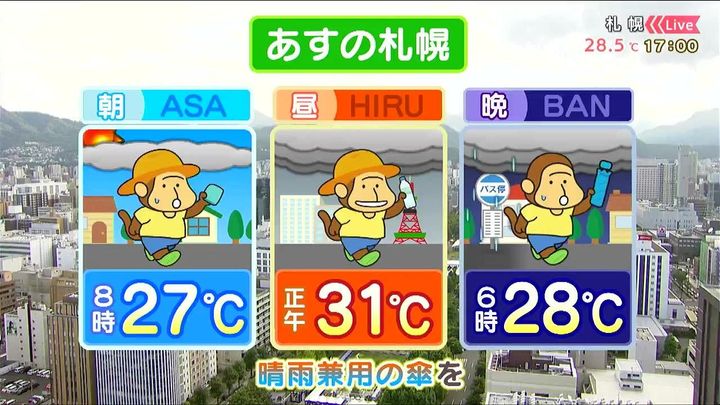 あす17日(木)の札幌です!朝昼晩の天気をもんすけでお伝えします!