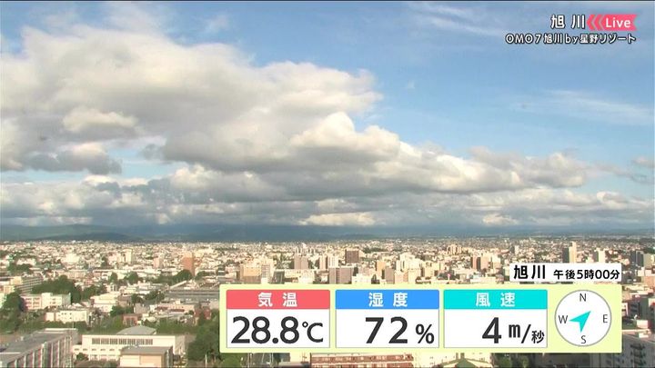 旭川では厚い雲がありますが、晴れ間もあります。きょう16日(水)昼頃は路面が濡れるほどの雨が降りました。週末は大雨になるおそれがあります。