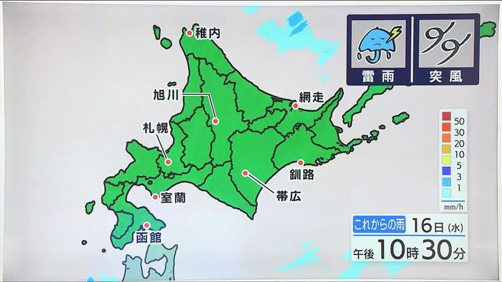 ※16日午後5時時点の情報です。最新の気象情報は、HBCウェザーセンターのホームページなどでご確認ください。HBCは気象庁の認可を2001年に得て以来、民間気象会社の一つとして「HBCの独自予報」を発信しています。