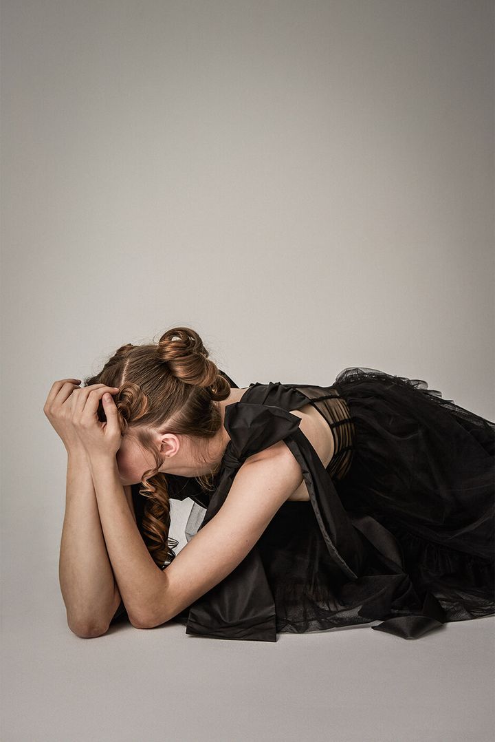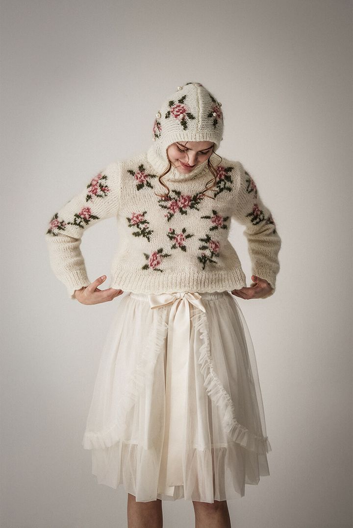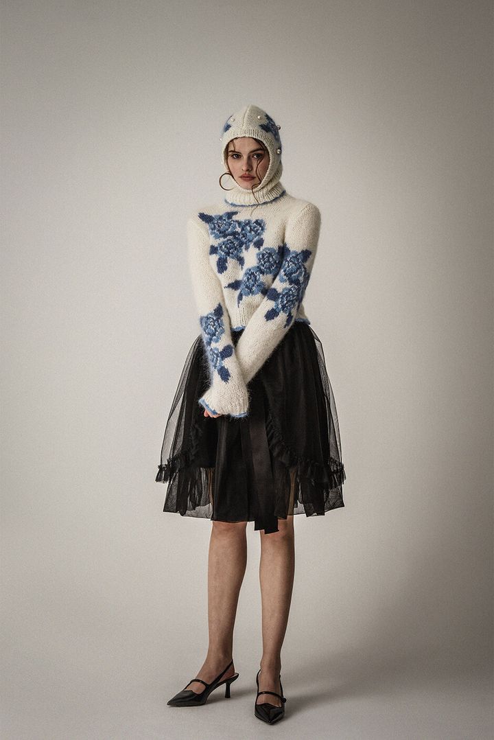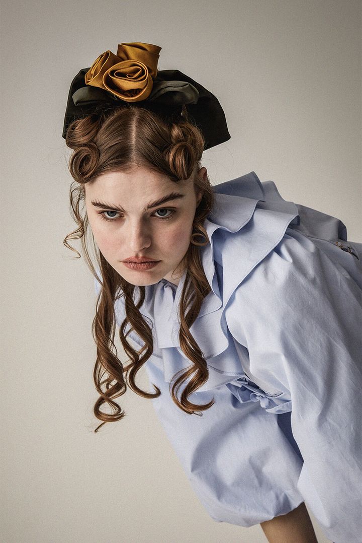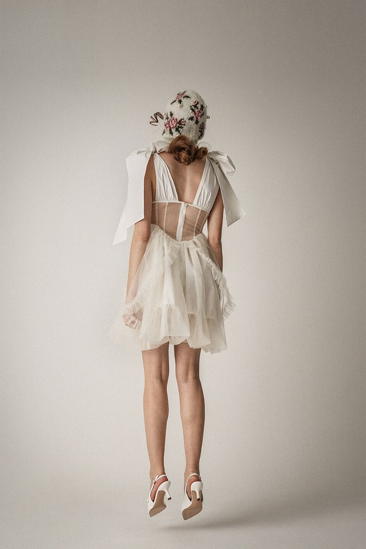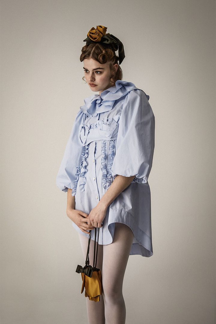 コレクションでは、そうした不思議なエピソードを手がかりに、アンティークの服や食器、幼少期の思い出をモチーフとしたデザインを展開。