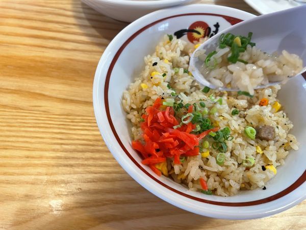 外の焼飯ののぼり旗には ”こだわり” の文字が書かれていたので、どんなものか検証のために実食(と言い訳ですが)。 「一味」の焼飯は、ご飯に何か懐かしさを感じる醤油ダレが絡み、チャーシュー、ネギ、人参、玉子が入った五目焼飯でした。 これも選んで正解の一品でした。