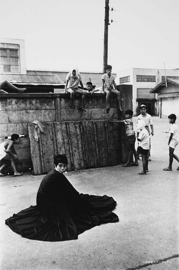 本展では、2人が出会った1963年に東京・芝浦の屠場を舞台に深瀬お手製の黒マントをまとった洋子を捉えた、没後初発表となるヴィンテージプリント33点を展示。