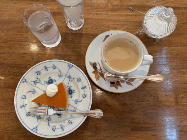 今回はカフェオレとチーズケーキをいただきました。チーズケーキは奥様のおすすめです。