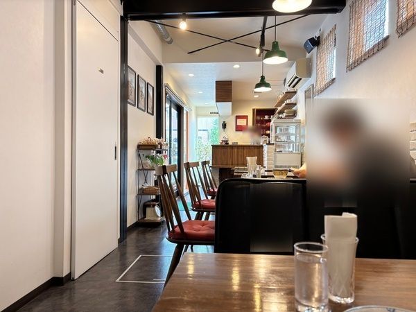 お店の入り口にある大きな窓から自然光が入り、コンパクトですが落ち着いた雰囲気の店内。