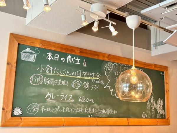 店内は、テーブル8席、カウンター6席。ランチは一人で行くことが多いので、カウンター席のあるお店は本当にありがたいです。 ランチメニューはテーブル席側壁面のブラックボードで確認できます。