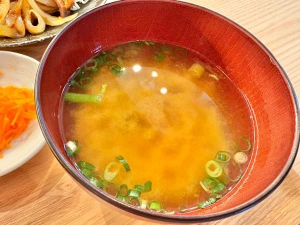 エアコンで冷え切った体に染み渡る、あたたかいお味噌汁。かぼちゃも入っていました!