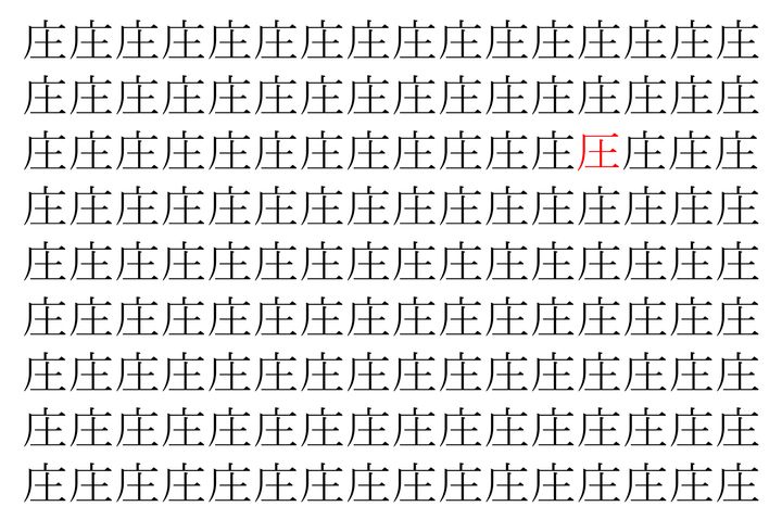 【脳トレ】「庄」の中に紛れて1つ違う文字がある!?あなたは何秒で探し出せるかな??【違う文字を探せ!】