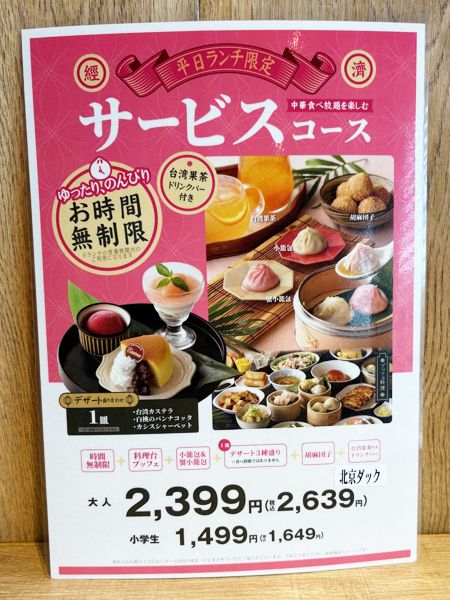 平日限定の「サービスコース」はお得! 大人2,639円