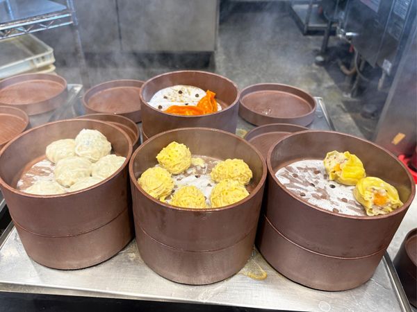 次々と蒸しあがる点心や注文後作ってくれる麺類、お茶も飲み放題!