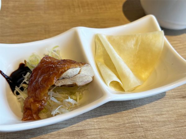 ちなみに…。7月中は「サービスコース」には、北京ダックもオーダーすることができます。ジューシーな肉を生地に巻いて食べる北京ダックは楽しくておいしい! 7月中ならこれ、マストオーダーです。