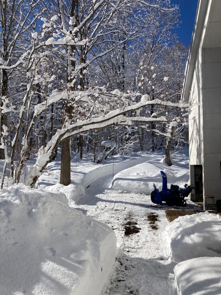 除雪機を持っていても、一晩で膝丈まで雪が積もった日には早朝仕事前に2時間かけて除雪をする。