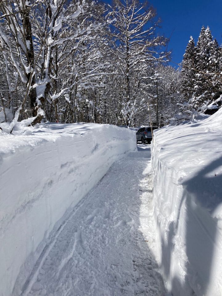 除雪してできた雪の壁は小さな立山黒部のアルペンルートのようだなと毎年思う。