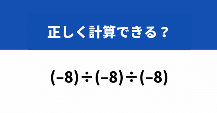 どうやって計算するか覚えてる?「(−8)÷(−8)÷(−8)」→正しく計算できる?