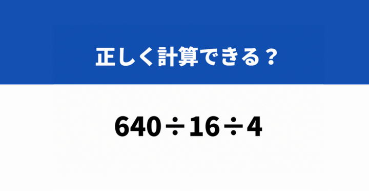 どうやって計算するか覚えてる?「640÷16÷4」→正しく計算できる?