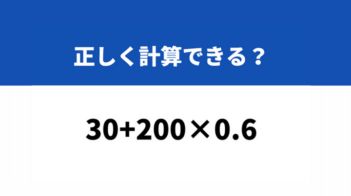 どこから計算するのが正解?「30+200×0.6」→正しく計算できる?