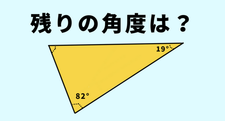 これどうやって計算するか覚えてる?「三角形の2つの内角がそれぞれ19°と82°」→残りの角度は?