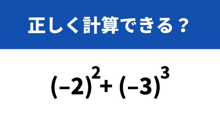 どうやって計算するか覚えてる?「(−2)^2+(−3)^3」→正しく計算できる?