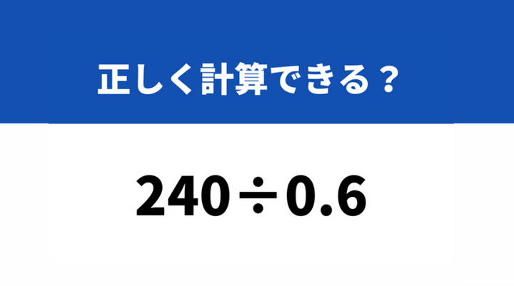 どうやって計算するか覚えてる?「240÷0.6」→正しく計算できる?