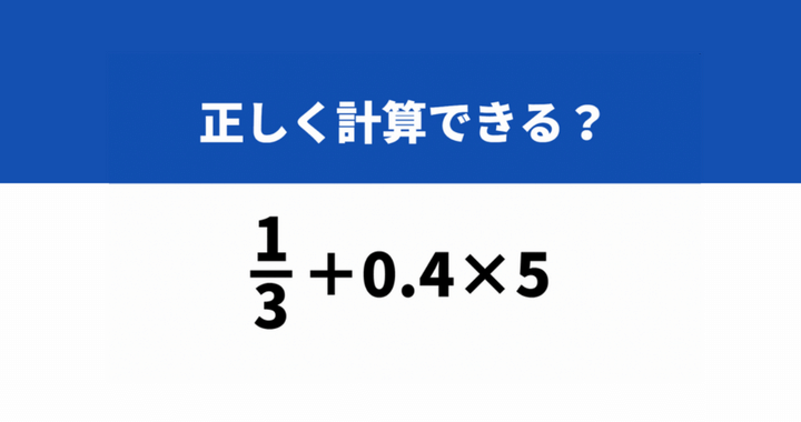 どこから計算するのが正解?「1/3+0.4×5」→正しく計算できる