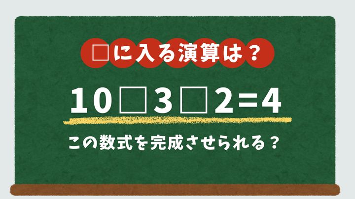 この数式を完成させられる?「10□3□2=4」→□に入る記号は?