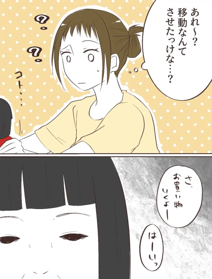 「あれ~?移動なんてさせたっけな・・?」と不思議に思いつつも、私は特に気にすることなく人形をもとの位置に戻しリコと買い物に出かけました。
