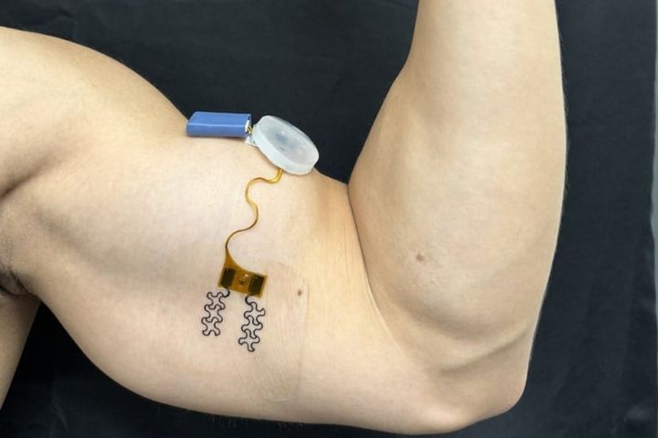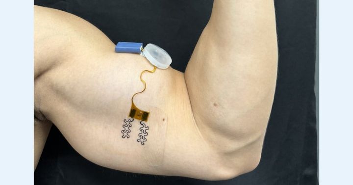 研究チームが開発したセンサーは、二の腕に貼り付けるタイプの小型軽量な装置で、バッテリー駆動となっています。