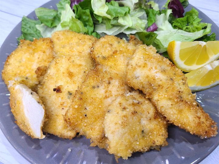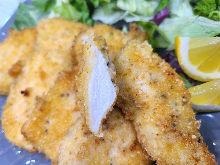ソミュール液に漬け込むだけで、こんなにふわふわになるとは驚きです。下味がしっかりついているので、レモン汁をかけるだけでとってもおいしくいただけました♡チーズを混ぜたパン粉のコクのある濃厚な味わいも、さっぱりとした胸肉とぴったり合います♪淡白な胸肉が、しっかりとメインディッシュになった感じです。味がしっかりしているので、ご飯も進みます!