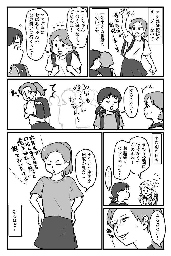 私は30代の主婦です。2人の小学生の娘がいます。長女のマナは小学6年生に、次女のエナは小学1年生になりました。小学校で仲の良いお友達ができて楽しく過ごしていると思っていましたが、お友達から避けられているかも……という話を聞き、とても心配になりました。お友達のサラちゃんたちは優しくて争いごとを好まないタイプに見えます。そんな子たちがなぜエナを仲間はずれにするのか疑問に思いました。近くで話を聞いていた長女のマナが「原因はエナにある!」とハッキリと言うのです。マナが言うには、エナの「許せない」性格がお友達との付き合いをこじれさせていると言います。事態を良くするためにマナの話を詳しく聞いてみることにしました。