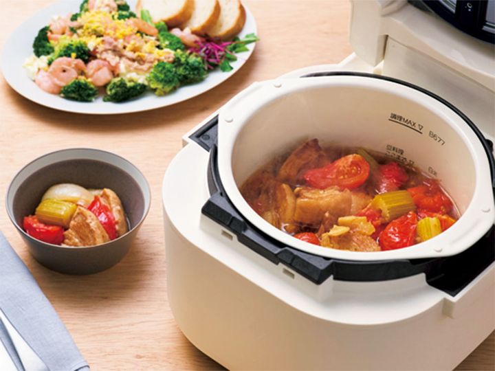 蓄熱性の高いホーロー鍋の採用で、料理の仕上がりが格段にアップ! 頑張りすぎるママたちに「ちょっと休んでてね」と優しい調理家電。お手入れも簡単で至れり尽くせり。ホーローは、熱が均一に伝わりやすく、逃げにくいのが特長。食材にじっくりと火を通したい煮込み料理などが美味しく仕上がります。アプリと連動すればメニューの提案も!