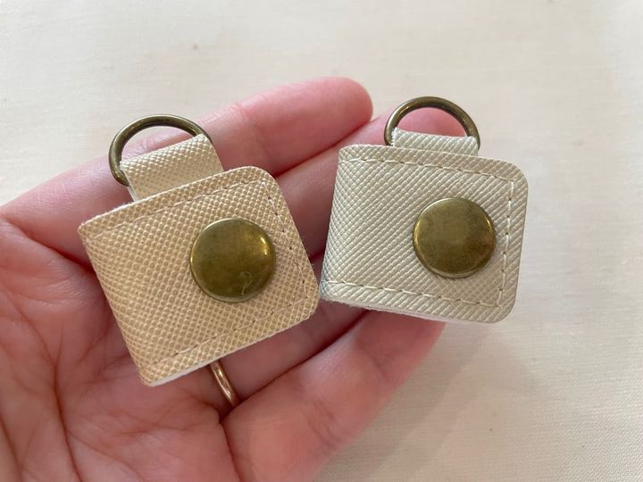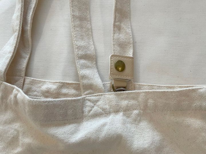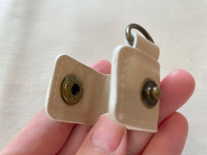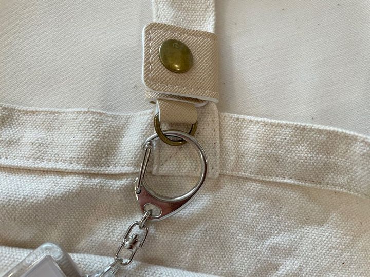 シンプルなデザインで、どんなバッグにも馴染みやすい印象です。スナップボタンで持ち手に留める仕組みなので、取り付け、取り外しも楽チンです。