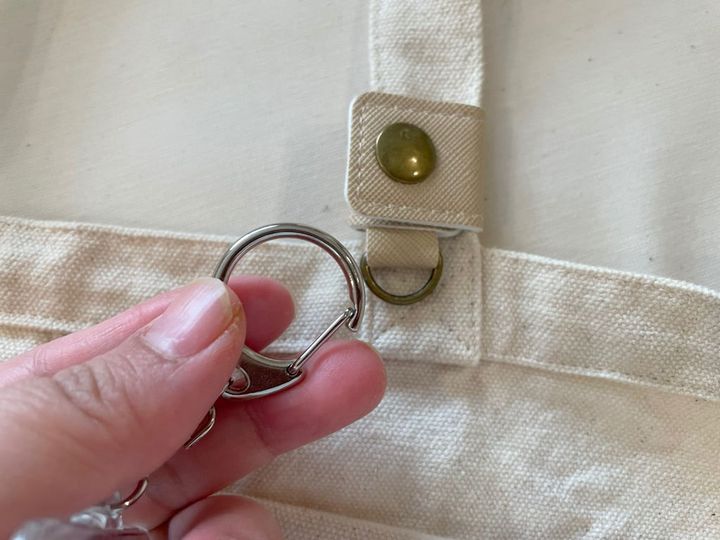 では、さっそくバッグの紐に付けるキーホルダーをバッグに付けてみましょう。