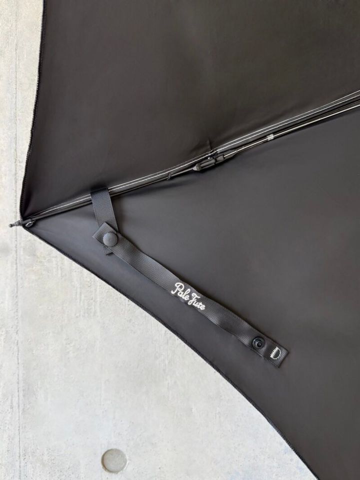 傘を開いた時に邪魔にならないように、ネームバンドを留めるベルトが付いています。なんと心憎いアイデアでしょう。わたしは、傘を開いてネームバンドをパチンと留める時、セレクトショップのオーナーである友の顔が浮かぶので、ついにっこりとしてしまいます。