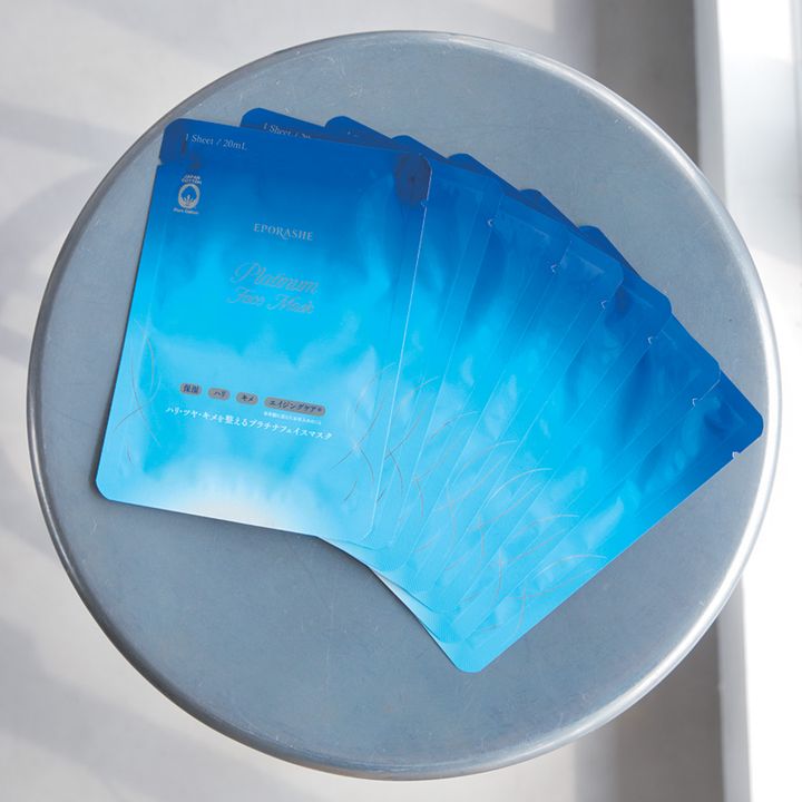 シートパックはべたつくので苦手でしたが、エポラーシェのプラチナフェイスマスクはさっぱりとした使い心地。間髪入れずにメイクをしてもスッと馴染むのがお気に入り。