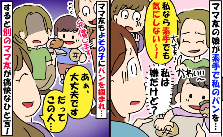自分の娘がパン屋で手掴みしても叱らないママ。しかし自分も手掴みされ…すると別のママが痛快な一撃!