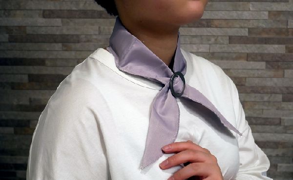 縛るにはやや短いので、使う際は別売の「スカーフリング マット」で留めるのがオススメです。色は写真の紫のほか、グリーンもあります。懸念点としては、保冷剤が小さいので暑い日だと比較的すぐに柔らかくなってしまうこと、縫い目が外に出ているデザインで、好みが分かれることが挙げられますが、税込み110円なら十分な価値があるのではないかと感じました。