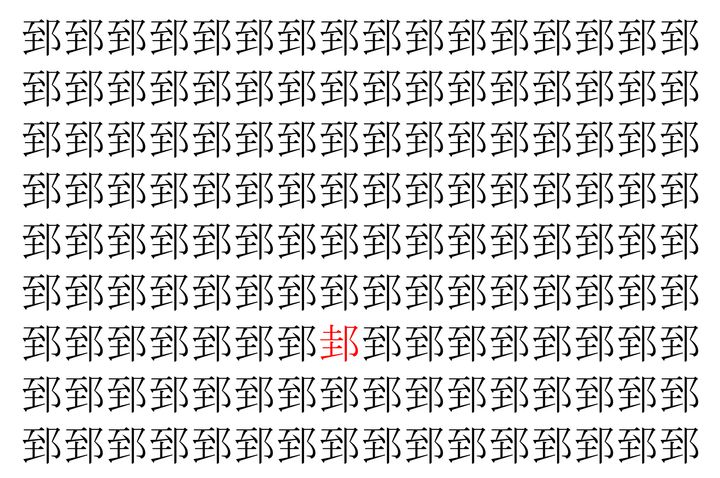 2. 【脳トレ】「郅」の中に紛れて1つ違う文字がある!?あなたは何秒で探し出せるかな??【違う文字を探せ!】