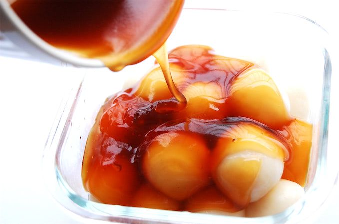 注意点は、みたらし餡をかけた状態で冷蔵庫に保存すると、みたらし餡が分離してしまうこと。なので、食べる直前に食べる分だけかけるのが、ベストだそうです。
