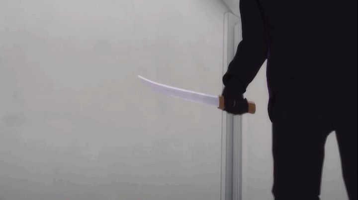 再び現れた男の手には、鋭いナイフが。後ずさり、追い込まれた「俺」の喉元に、男はそのナイフを振りかざし……!