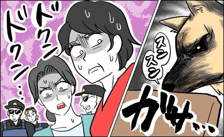 母と友人がいよいよ警官の前を通る番になりました。当然やましいことはないので堂々と通過しようとすると、なんと先ほど吠えていた警察犬が、友人の持っていた紙袋に近づいてきて顔を紙袋の中に突っ込んだまま静止したのです。