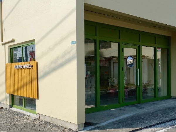 松末町のフジの近くにあるKIJIUMA BAGELさん。 北欧のお店みたいなシンプルでセンスのいい外観。2025年5月8日にオープン。